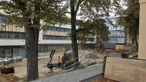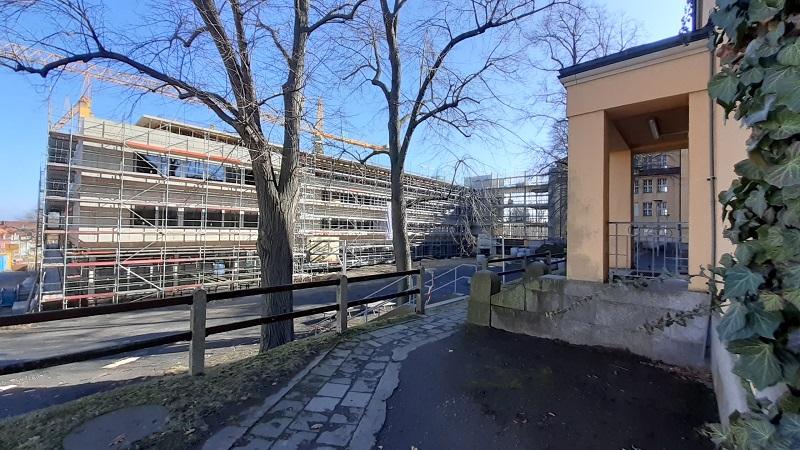 Das Gerüst ist gefallen und der neue Anbau der Lessingschule kann vom neugierigen Auge von außen bestaunt werden. Trotz schwieriger Materiallage und Pandemiesituation sind nur geringe Verzögerungen beim Bau aufgetreten, der im kommenden Frühjahr seine Tore öffnen soll. Zwei Bilder, eines vom nun Innenhof und eines von der Außenseite, stehen hier schon mal als Vorgeschmack auf das kommende Erscheinungsbild.