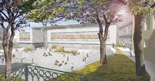 Die Planungen für den neuen Anbau und den Umbau der altehrwürdigen Lessingschule sind längst im vollen Gange. Dabei gibt es nun einen Entwurf des verantwortlichen Architektenbüros. Daraus sind nachfolgend zwei Ansichten ausgewählt, damit man eine Vorstellung von dem neuen Gesicht der Schule nach Vollendung der Baumaßnahmen bekommt.